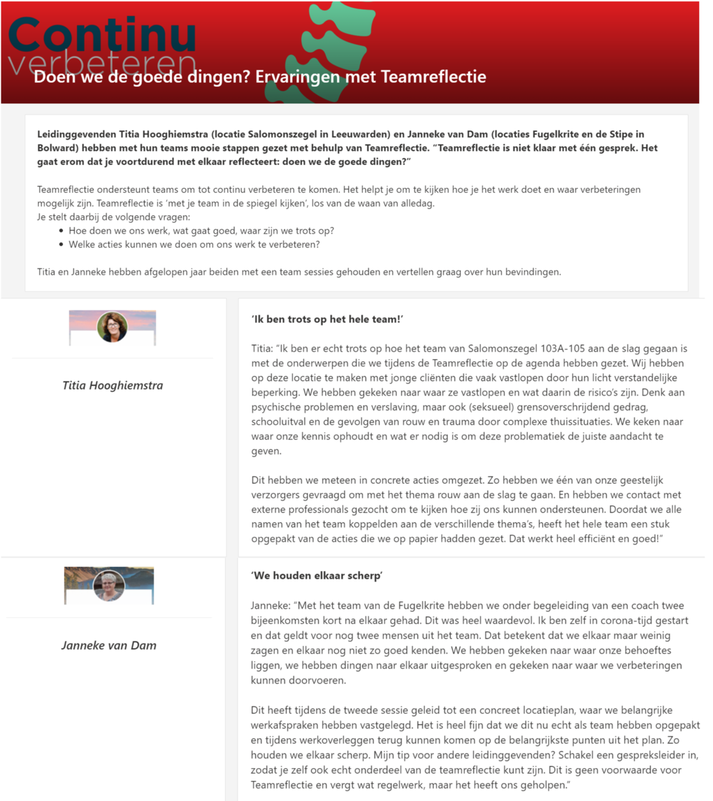 De behaalde resultaten op het gebied van continu verbeteren verschillen nog per team. We zien goede voorbeelden, maar ook teams die nog onvoldoende resultaat behalen.