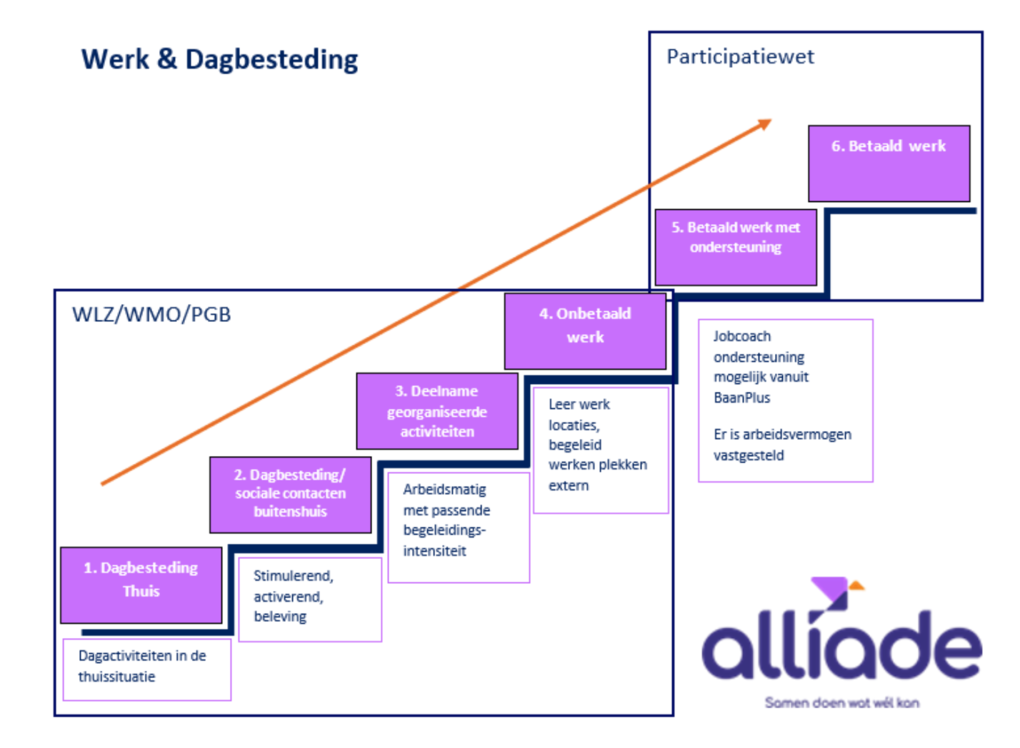 Binnen de (gehandicapten)zorg vindt een kanteling plaats naar verhoogde deelname en betrokkenheid bij de maatschappij. Het streven is dat iedereen naar vermogen zoveel mogelijk bijdraagt in het belang van zowel de cliënt als de maatschappij. Om een toekomstbestendig en duurzaam werk en dagbestedingsaanbod te ontwikkelen is het verbeterproject ‘werk en dagbesteding’ gestart.